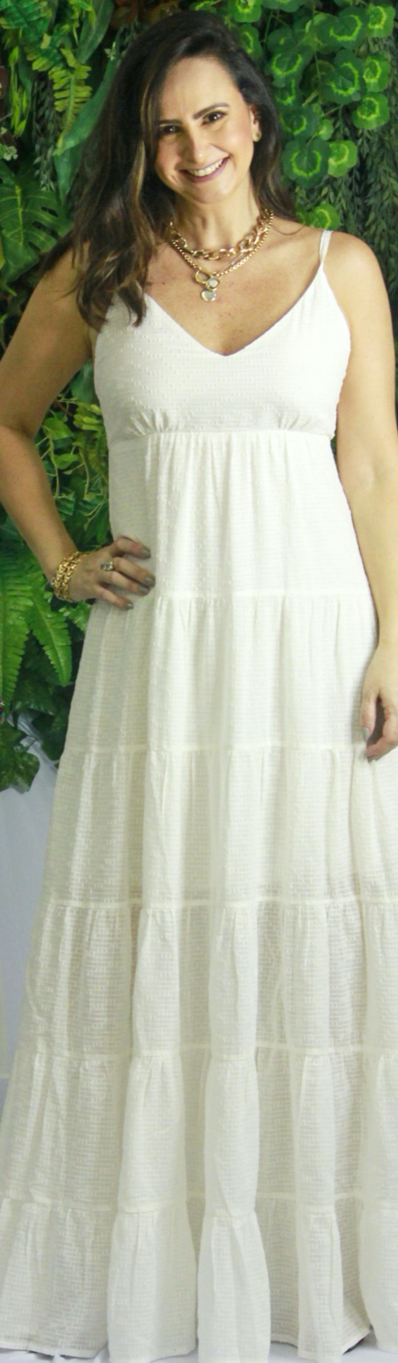 Vestido longo em camadas