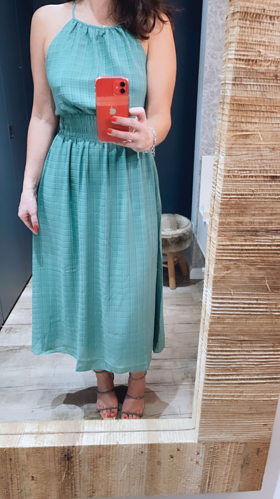 Vestido midi com elástico na cintura